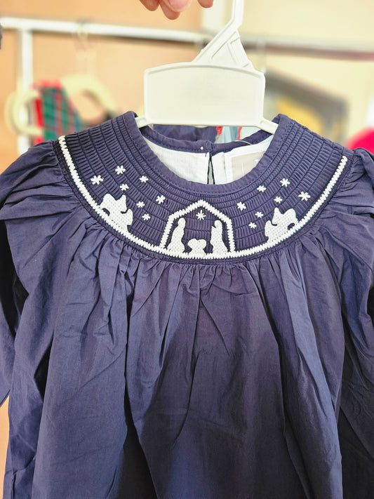 Girls Navy Nativity Smocked Dress